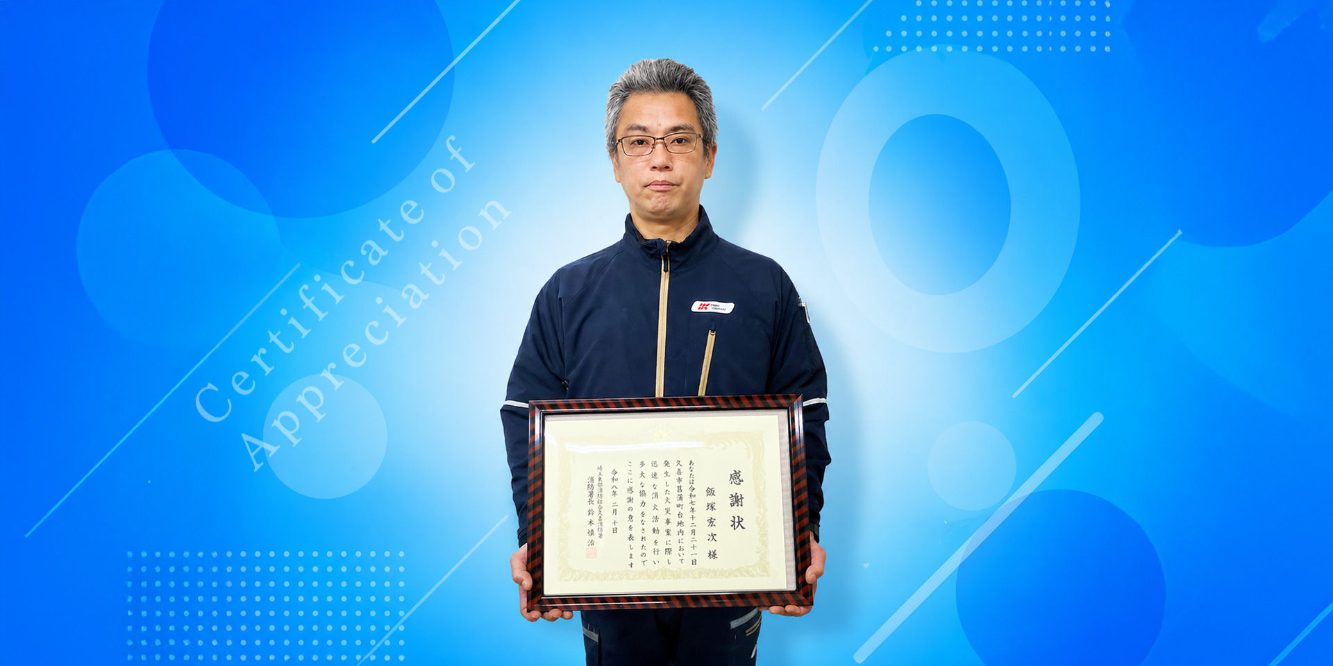 2025年12月21日22時40分頃、埼玉県久喜市の白岡菖蒲IC交差点付近で車両火災を伴う大きな交通事故が発生しました。配送業務を終え本社へ戻る途中だったワンロジ関東支社のドライバーIさんは、炎上する車内に取り残された人の救助にあたり、その行動が称えられ久喜警察署から感謝状を贈呈されました。